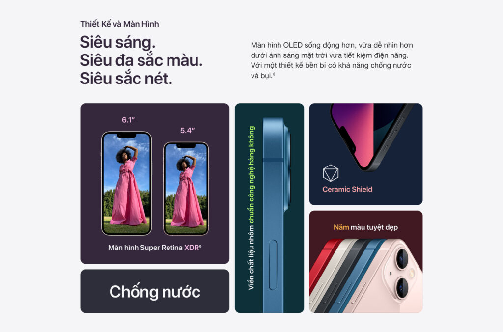 iPhone 13 mini. Hệ thống camera kép tiên tiến nhất từng có trên iPhone. Chip A15 Bionic thần tốc. Thời lượng pin tăng vọt. Thiết kế bền bỉ. Mạng 5G siêu nhanh.1 Cùng với màn hình Super Retina XDR sáng hơn.